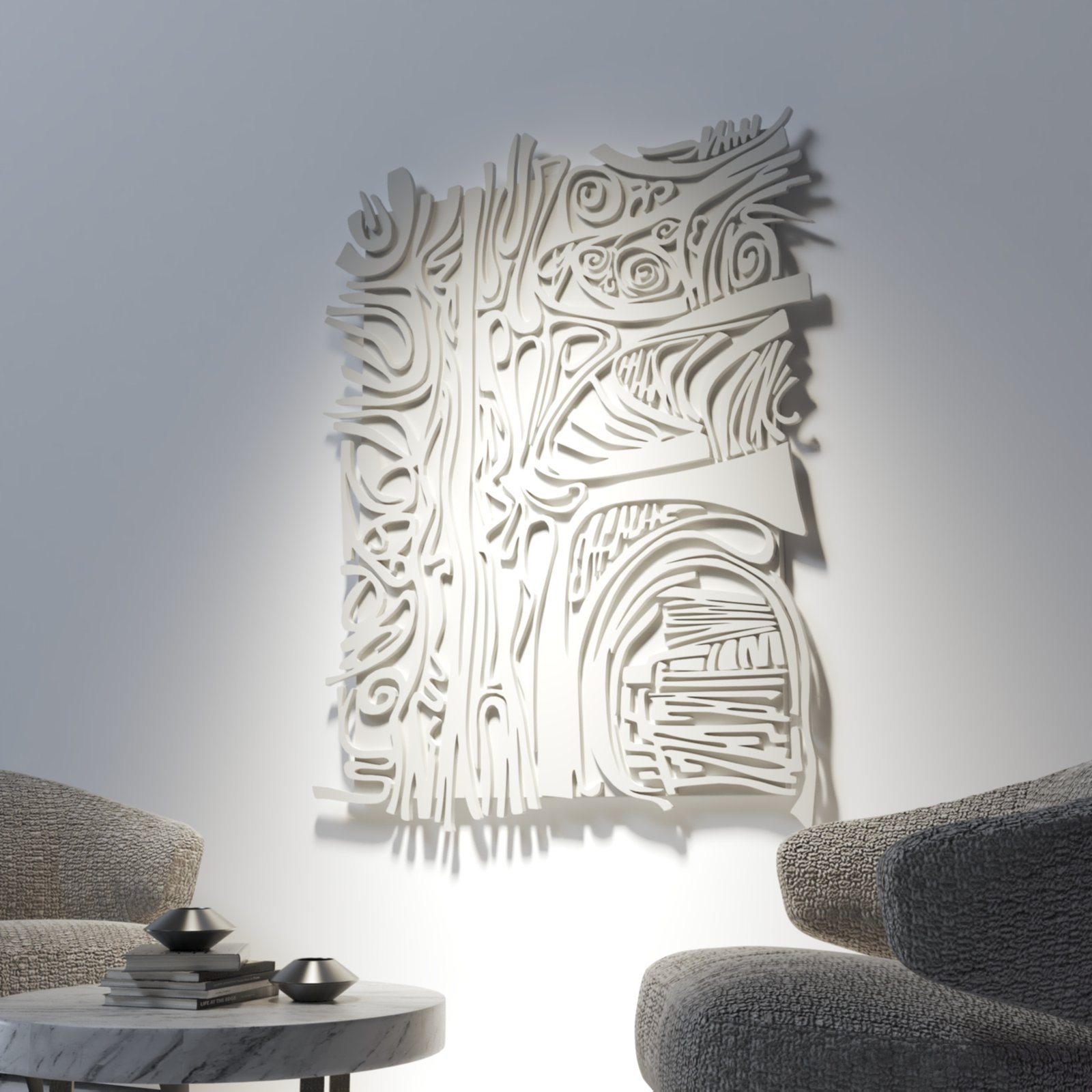 Elevate your interior with this stunning abstract wall panel, crafted with intricate layered details and a contemporary sculptural finish. Its dynamic patterns bring depth, movement, and artistic flair to any modern living space. Available in multiple vibrant colors to perfectly match your décor.